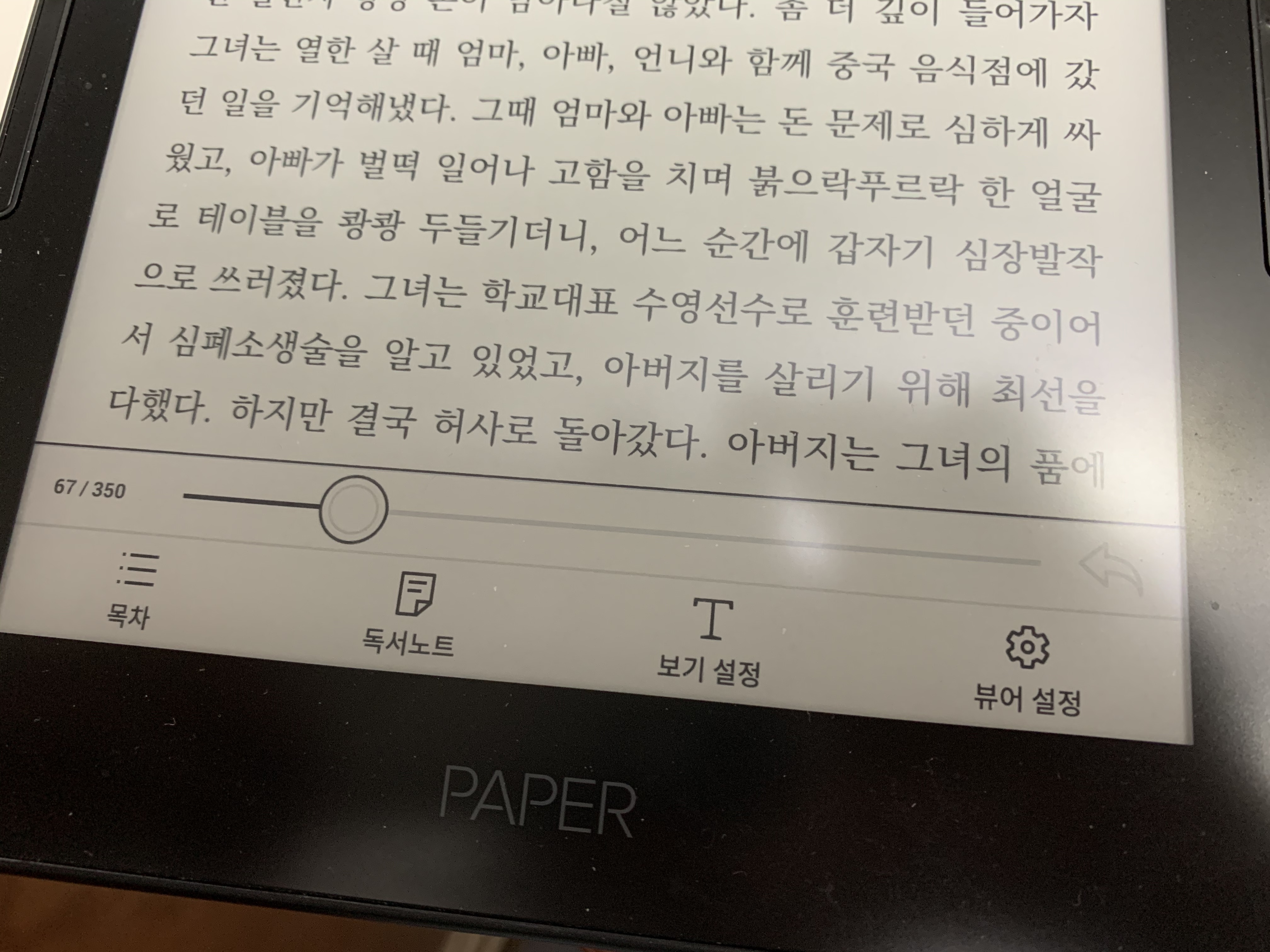 시간을 아끼기 위해서 평소 리디북스 페이퍼로 읽다가 이동시에는 음성으로 책을 듣거나 스마트폰으로 읽기도 합니다.