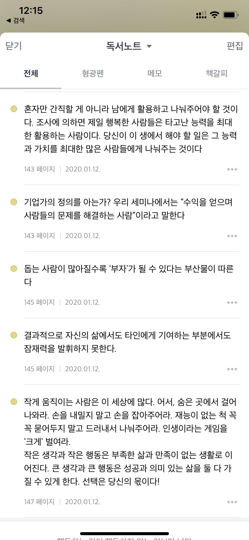 더욱 중요한 점은, 이렇게 및줄친 내용과 메모한 내용들은 나중에 한번에 검색을 할 수가 있다는 점입니다. 종이책에서는 상상도 할 수 없는 전자책만의 장점이 되겠지요?