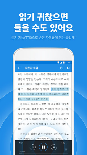 리디북스의 경우, 컴퓨터가 직접 읽어주는 TTS 기능을 지원하고, 밀리의 서재에서는 작가나 성우가 직접 읽어주는 기능을 지원하고 있어요. 이 기능에 대해 궁금하신 분이 있으면 나중에 다뤄보도록 할게요.