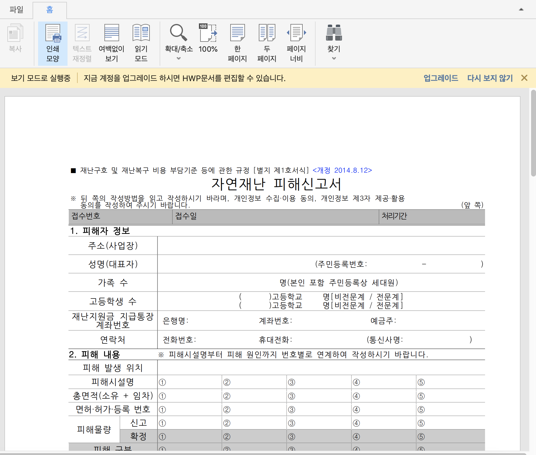 제가 테스트로 재난지원금 신청서.hwp 파일을 올려서 테스트 해봤습니다. 예상외로 굉장히 깔끔하게 잘 열리는 모습을 볼 수 있었습니다. 어떤가요? 괜찮죠.