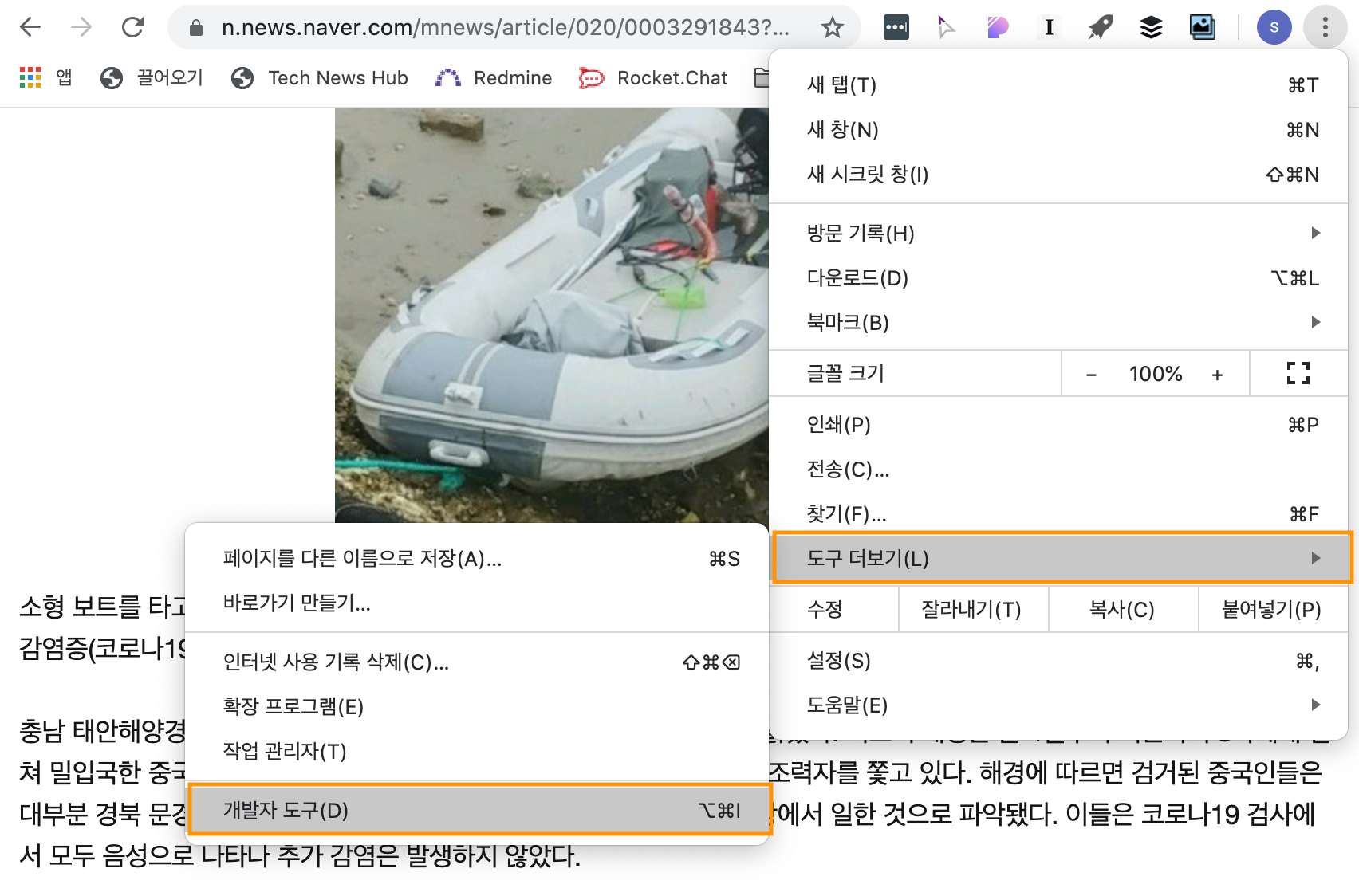1. 도구 더보기 --> 개발자 도구 메뉴 열기