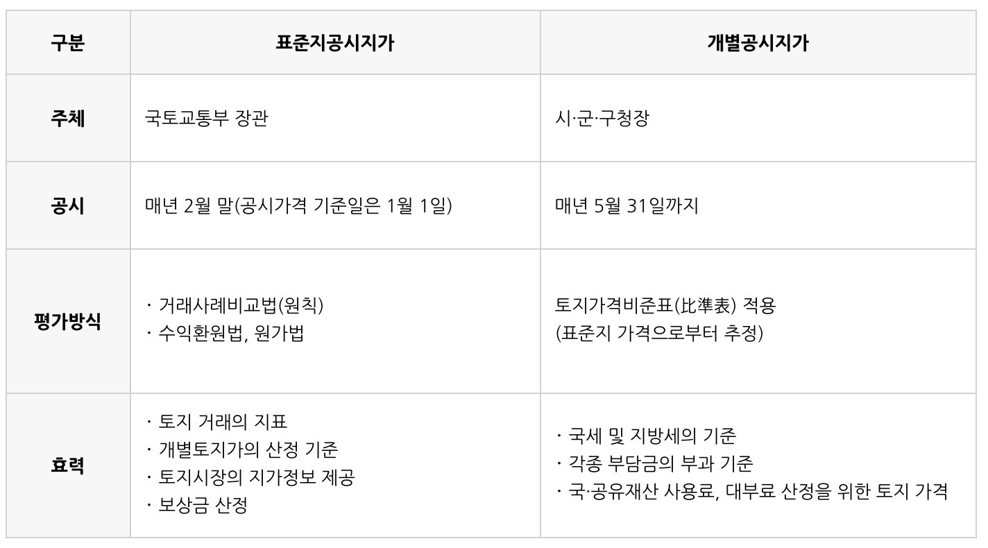 표준공시지가와 개별공시지가의 차이