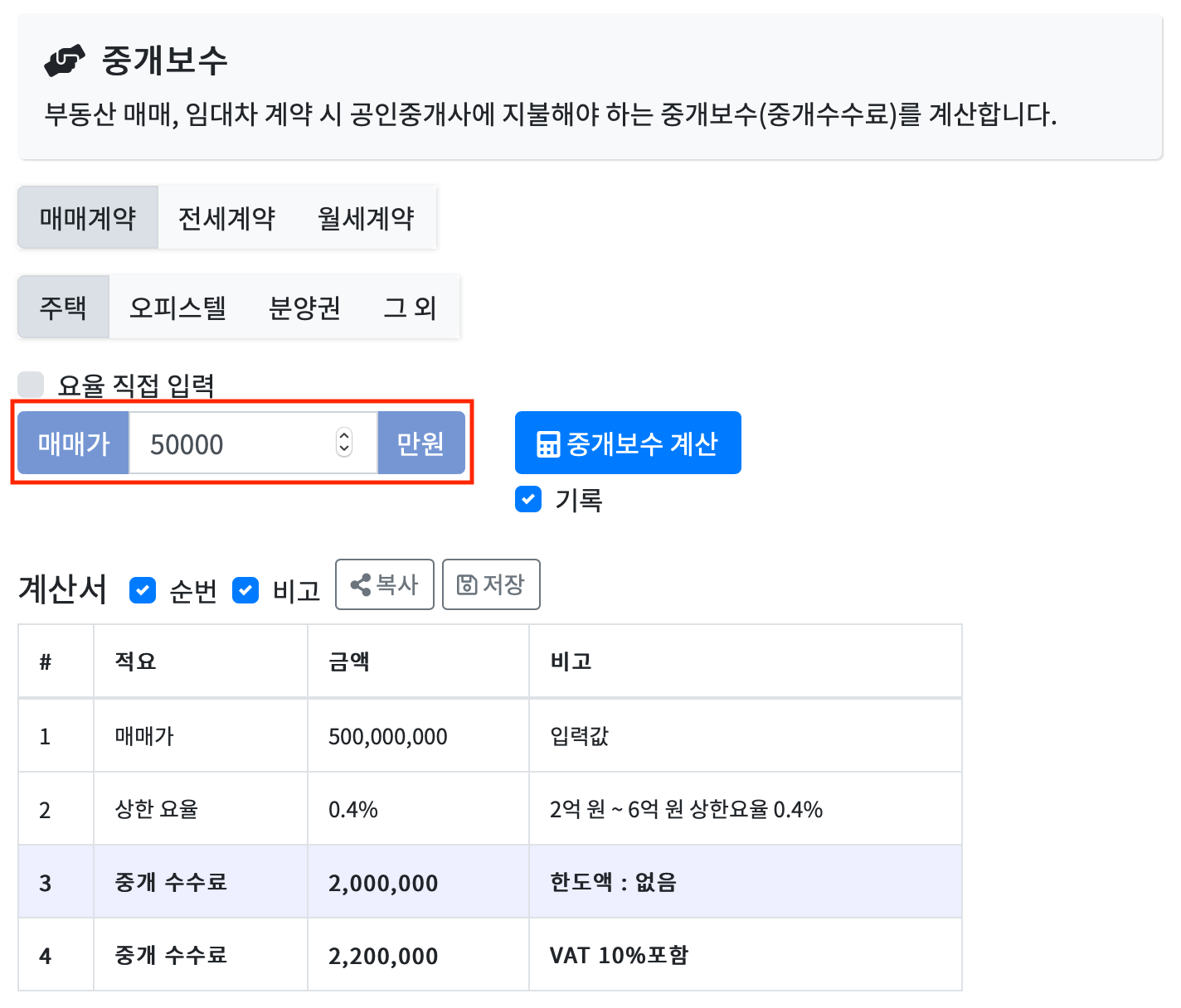 부동산 중개수수료 계산기