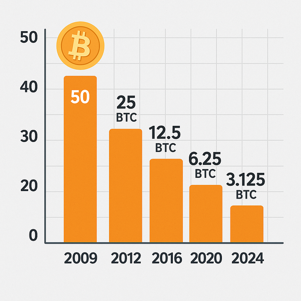 하지만 이 보상은 약 4년마다 ‘반감기’라는 이벤트로 절반씩 줄어듭니다.