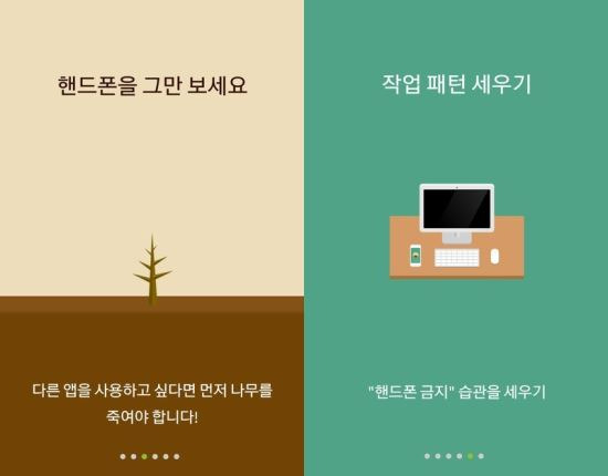 앱을 실행하고 집중 시간을 설정하면, 스마트폰을 사용하지 않는 동안 가상의 나무가 자랍니다.