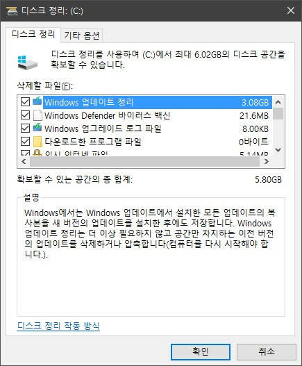 디스크 정리와 임시파일 삭제