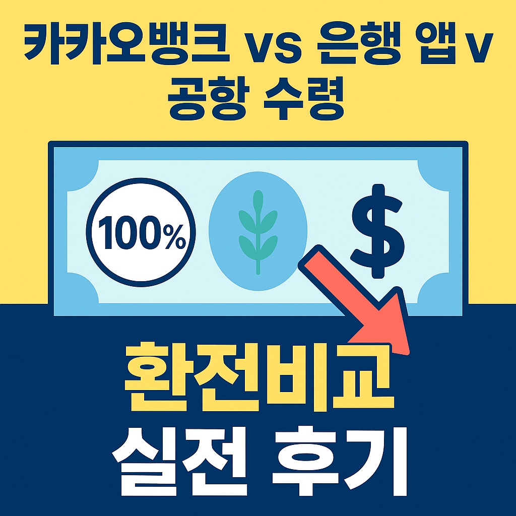 이번엔 직접 사용해본 **세 가지 환전 방법(카카오뱅크 앱, 주요 시중은행 앱, 공항 수령)**을 비교해봤습니다.